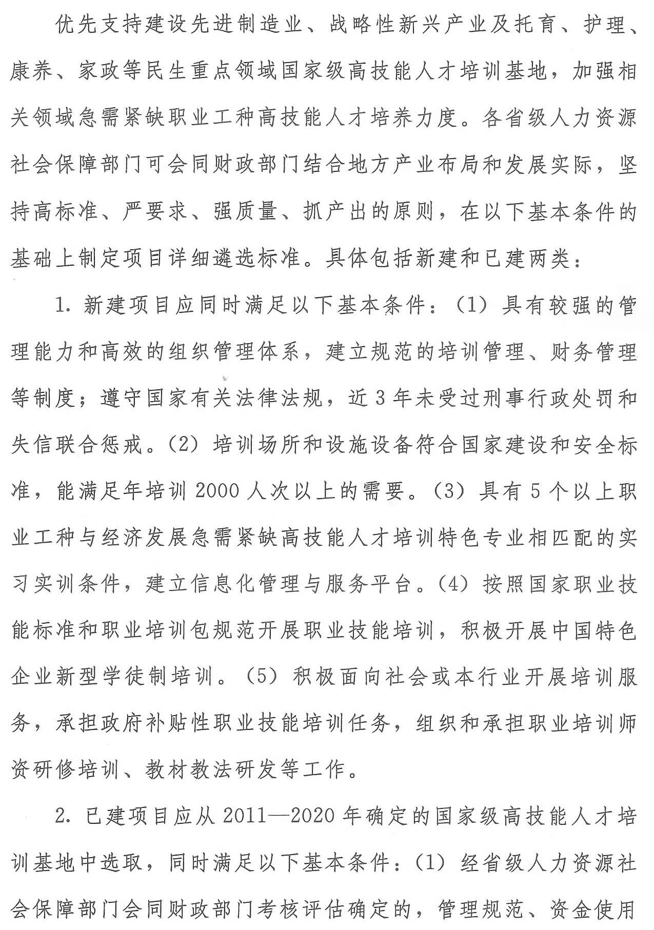 国家级基地候选项目原则上推荐省级高技能人才培训基地。