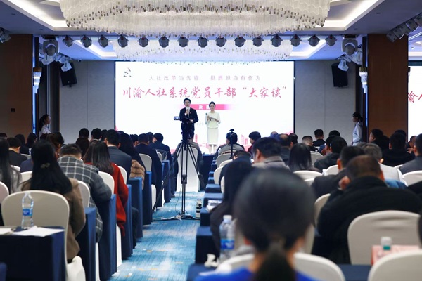 为推动川渝人社合作走深走实,强化模范机关建设,以高质量机关党建促进人社事业高质量发展,11月27日,川渝人社系统党员干部“大家谈”决赛在重庆举办。四川省人力资源和社会保障厅党组成员、副厅长、机关党委书记熊义堋,重庆市人力资源和社会保障局二级巡视员、市就业局党委书记、局长唐天元出席大赛并讲话。川渝人社系统100余名党员干部参加活动。