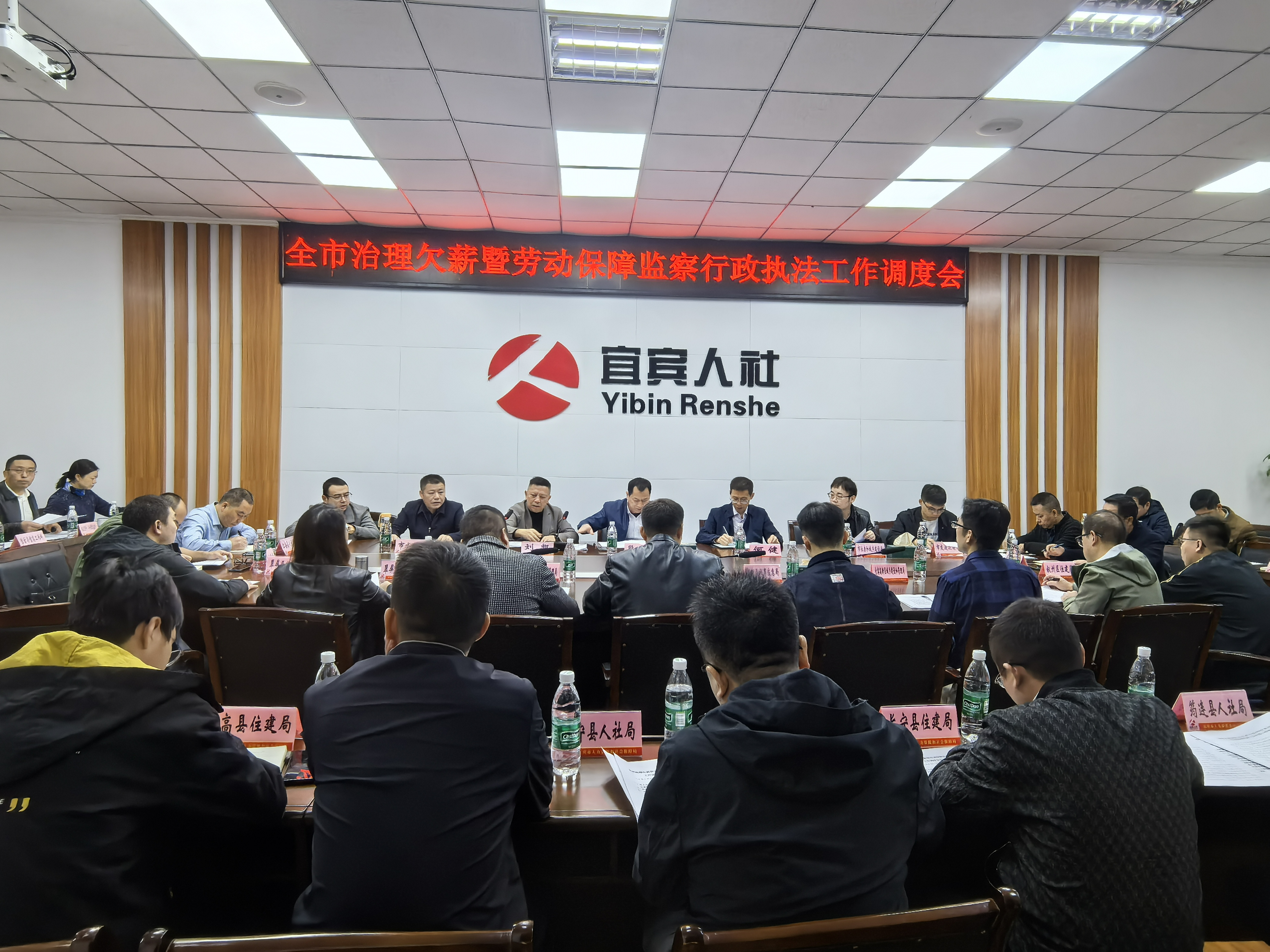 11月5日,宜宾市人力资源和社会保障局召开全市治理欠薪暨劳动保障监察行政执法工作调度会。市人力资源社会保障局、住房城乡建设局、交通运输局、水利局、国资委等相关单位负责人以及各县(区)人社、住建部门分管同志和劳动保障监察机构负责人共计50余人参加了会议。
