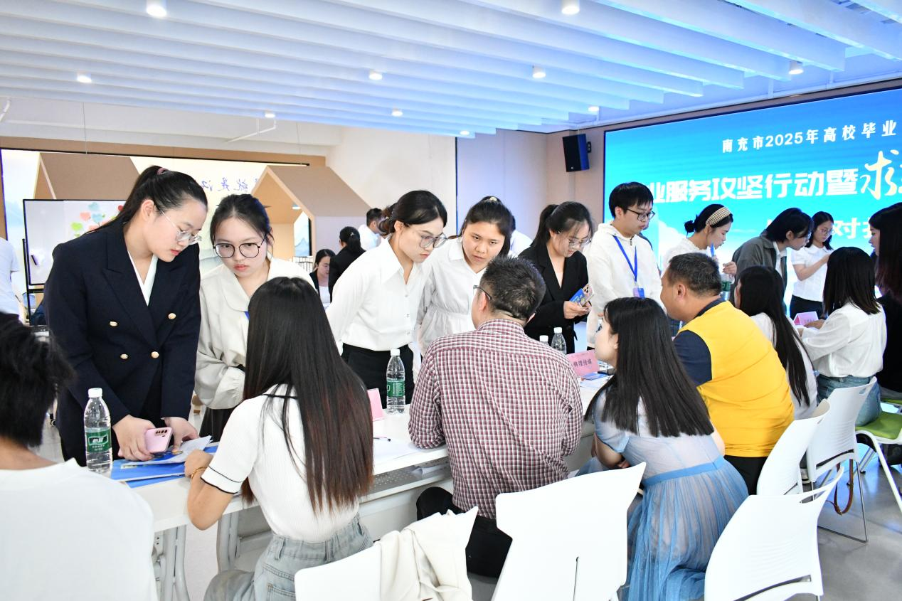 为促进实训成果转化,实训营于9月26日下午举办了“名企进营岗位对接会”,邀请了南充产业发展集团、四川人本轴承等20家优质企业进场招聘,提供机械工程师、文员、新媒体运营等近百个就业岗位,此外公共就业部门还带来了30余个社区就业见习岗位。