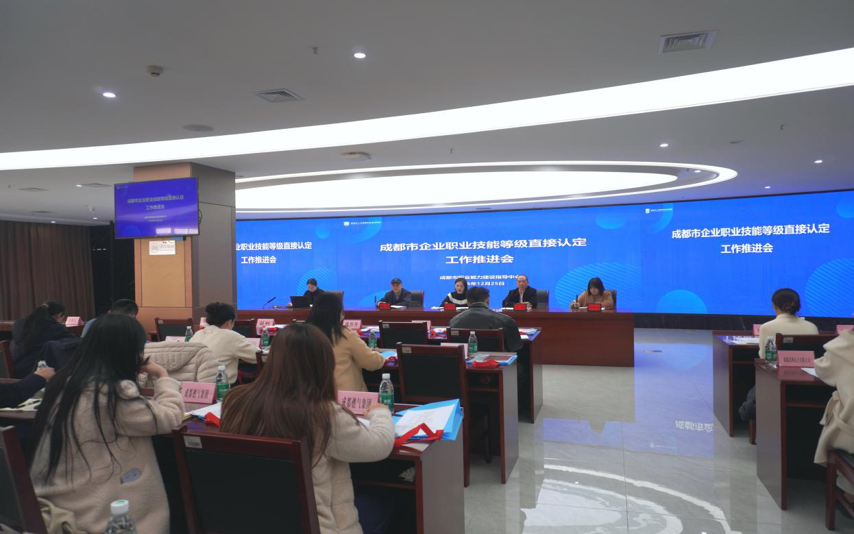 为深化技能人才评价机制改革,落实大规模职业技能提升行动部署,2025年12月25日,成都市企业职业技能等级直接认定工作推进会顺利召开。会议围绕政策解读、业务指导与经验交流展开,着力推动企业规范、高效、自主开展技能人才评价工作。来自轨道交通、电子信息、环境投资、能源发展、互联网科技等领域的12家重点企业代表参加了会议。